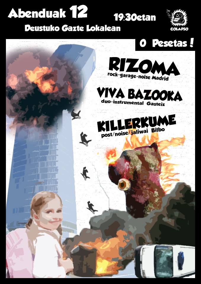 El tercer grupo de la noche eran el trío Bataälla provenientes de diferentes lugares de la península ibérica, formados en Salamanca aunque ahora uno de sus miembros esta afincado en la propia Orbeko Etxea. A pesar de que no habían tenido prácticamente tiempo para ensayar, como ellos mismos dijeron, el combativo y reivindicativo grupo mostró su mas que solido directo otra vez mas, ejecutando su Crust con algún regusto hacia el Metal y mucho hacia el Rock'n'Roll. Quizás todas las interrupciones que meten para tratar distintos temas, ojo muy interesantes, hagan perder un poco el ritmo del concierto, pero entiendo perfectamente que quieran primar y a dar a conocer tan justas reivindicaciones. Muy buena forma de encaminarnos hacia el plato fuerte de la noche.