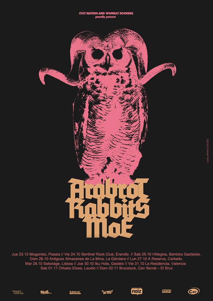 Se avecinaba una buena velada de ruido en el Sentinel Rock Club Erandiotarra de la mano de Wombat Booking, debido a una extensa gira a 3 bandas que tiene lugar por la geografía ibérica si bien es cierto que mayoritariamente esta discurriendo por el norte peninsular. Teníamos por un lado a dos bandas noruegas como son Årabrot y Moe y por otro lado a los estadounidenses Rabbits.